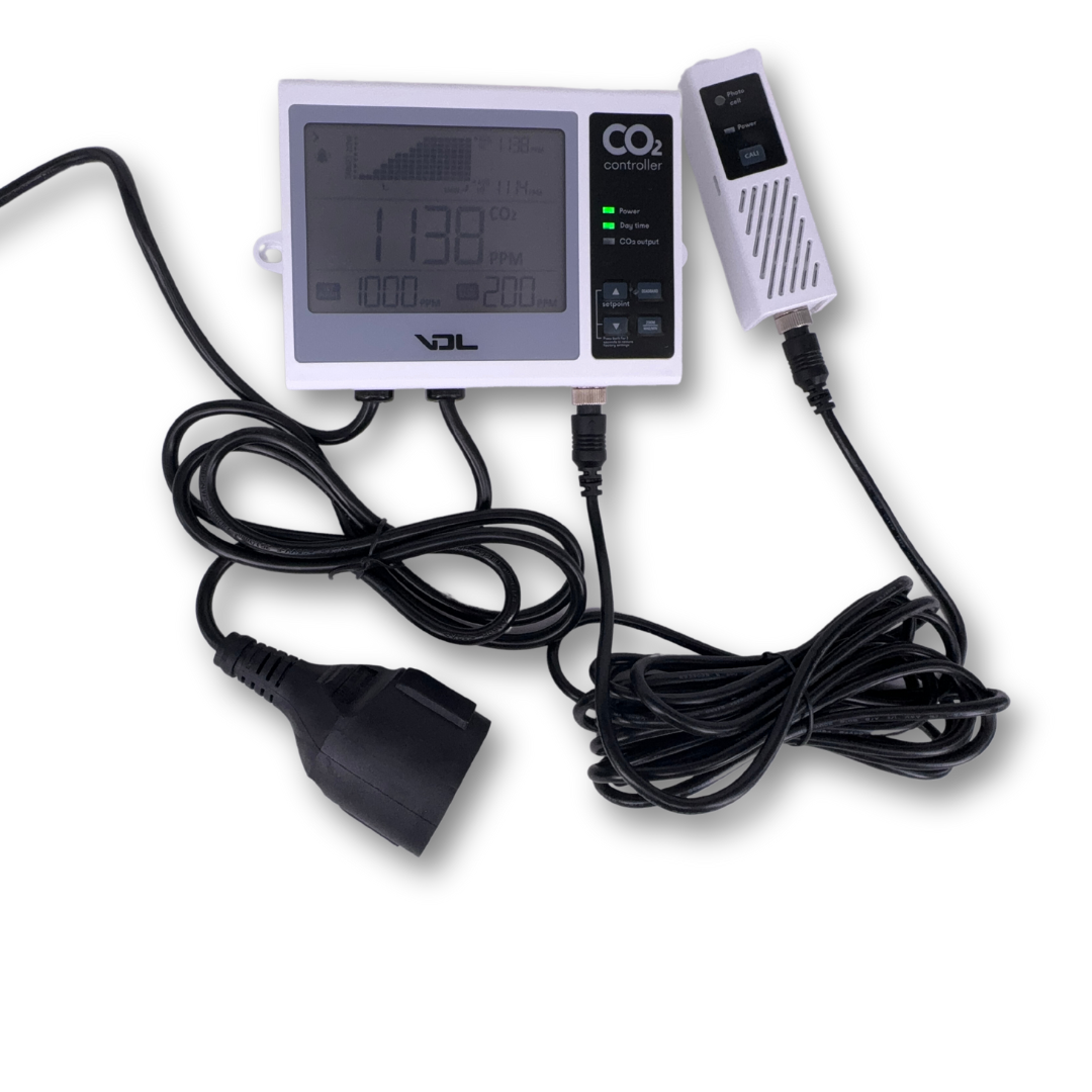 Controlador de CO₂ digitales un controlador fácil de usar, para medir y mantener los niveles de CO₂ en tu invernadero o sala de cultivo: una pantalla LCD digital grande donde leer a tiempo real los niveles de ppm, día, hora, minutos, alarmas, etc. Esta pantalla está dividida en zonas que hacen mucho más sencilla y rápido de localizar la lectura de los parámetros.