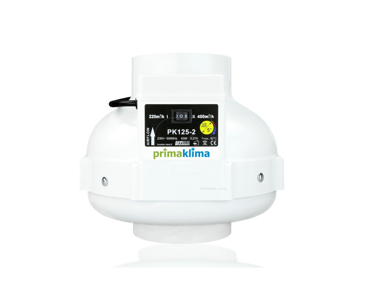 Son Extractores muy eficientes, ventiladores de conducto en línea de dos velocidades equipados con motor centrífugo Radical ebm-papst, con aspas curvadas y adaptadas a la carcasa. Utiliza un motor de condensador adaptado a la carcasa. Es muy silencioso.