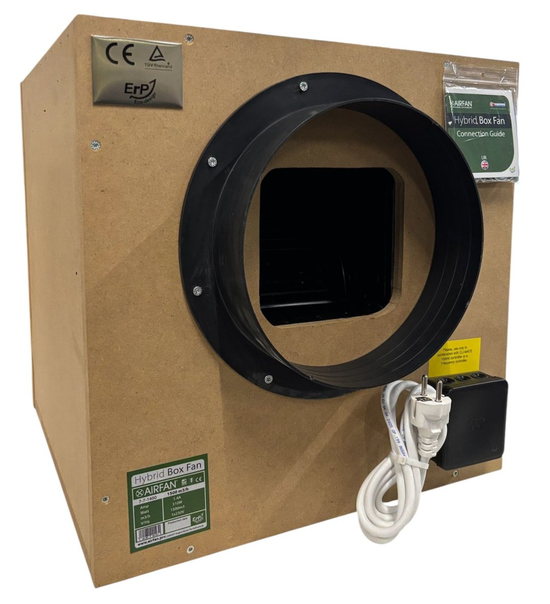 La Caja ISO-BOX MDF Híbrida de AIRFAN es un extractor en caja insonorizada pensado para instalaciones donde se busca gran capacidad de extracción con un formato robusto y práctico. La carcasa está fabricada en MDF y el ventilador va atornillado al panel frontal, que es por donde se realiza la expulsión del aire, favoreciendo un montaje limpio y directo en línea.