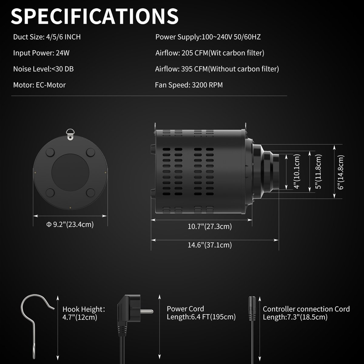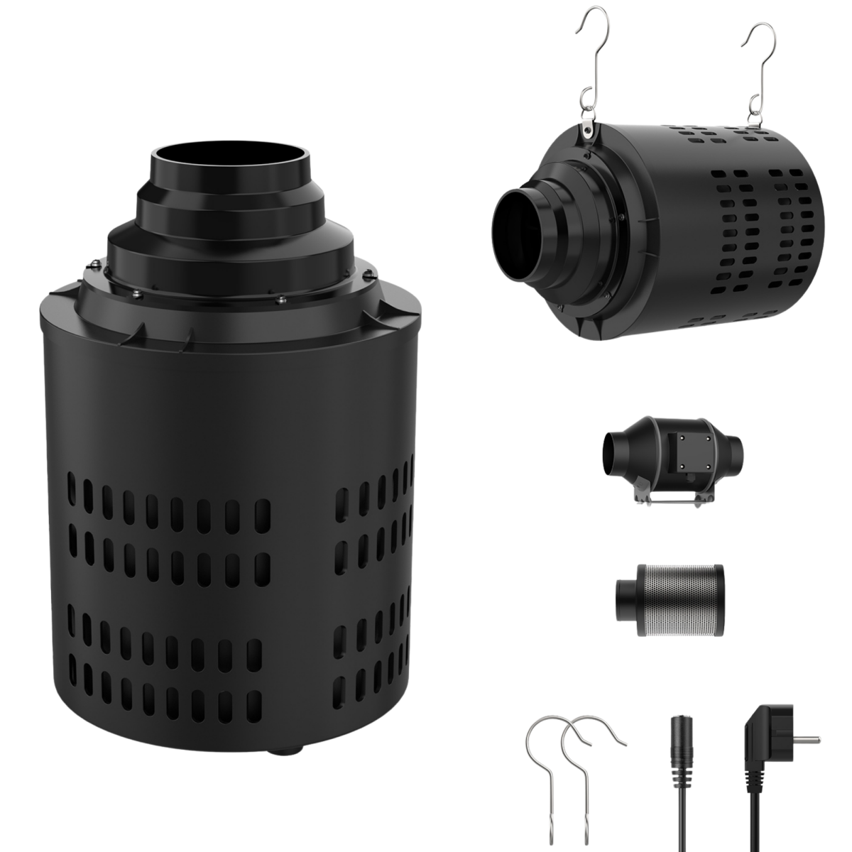 El sistema de ventilación Cyclone combina la eficiencia energética de un motor EC sin escobillas de frecuencia variable con la capacidad de purificación de un filtro de carbón activado de alto rendimiento. Este diseño 2 en 1 está diseñado para regular la temperatura y la humedad mientras elimina olores y partículas en entornos cerrados como armarios de cultivo e invernaderos.