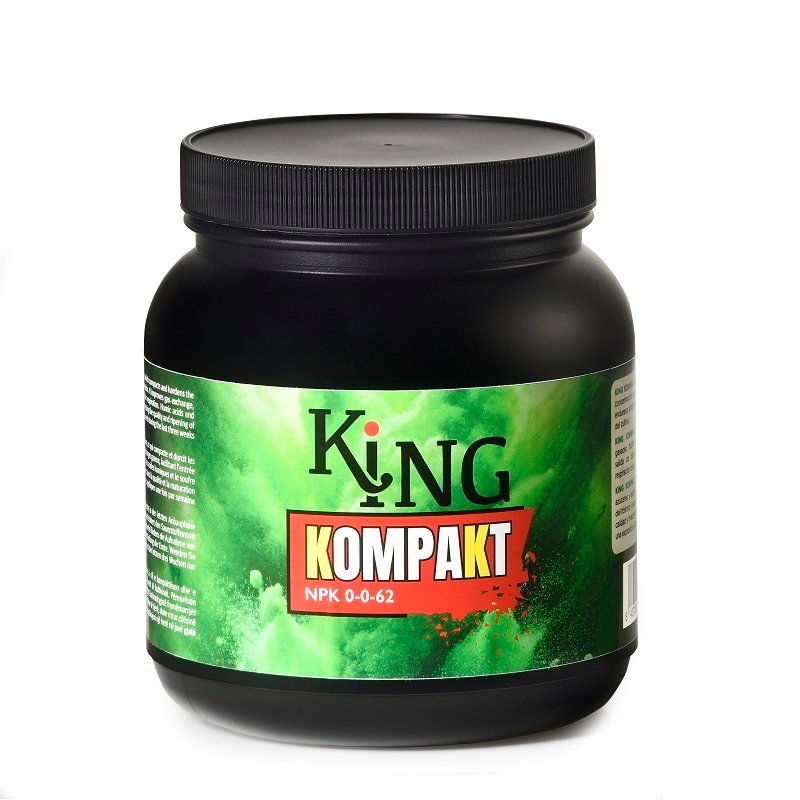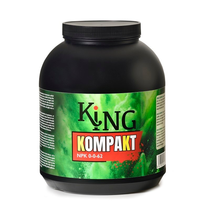 KING KOMPAKT contiene ácidos húmicos, azucares y azufre, que favorecen la absorción del fósforo y otros micro nutrientes, aumentando la calidad y maduración de la cosecha y promoviendo una explosión de resina.