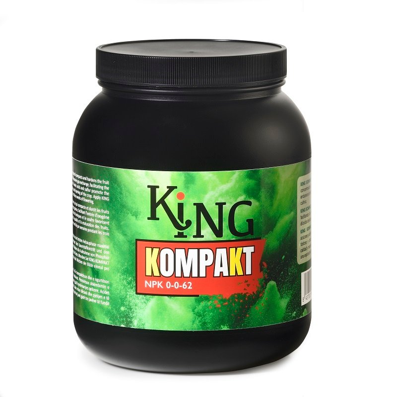 KING KOMPAKT esta formulado con un alta concentración de potasio, que compacta y endurece al máximo los frutos en la etapa final del cultivo.