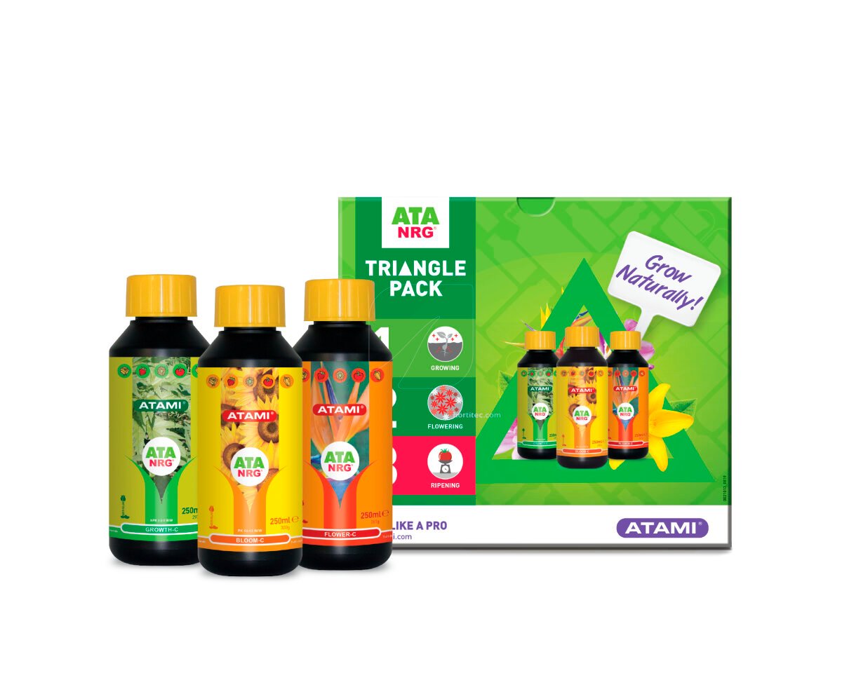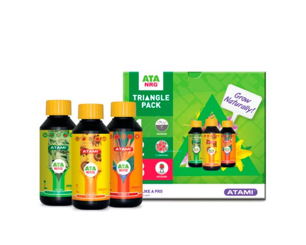 El Triangle Pack de ATA NRG es un pack creado para que los cultivadores noveles puedan iniciarse en el cuidado de sus propias plantas, aportándoles todos los nutrientes y estimulantes que requiere durante todo el ciclo crecimiento y la floración, consiguiendo con una baja inversión un buen rendimiento.