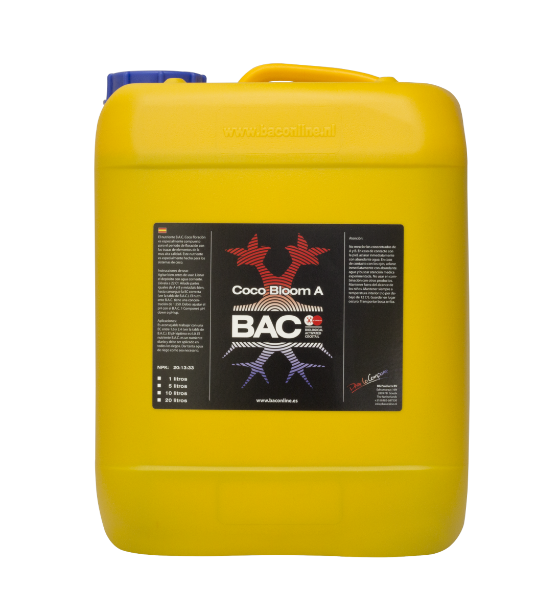Completa tus sustratos de coco en slabs o macetas de fibra de coco con la combinación de Coco Bloom A + refC#701007. Una mezcla concentrada de nutrientes que ofrecerá el PK indispensables para una floración abundante. Complementa Coco Bloom y Coco Grow para que durante todo el ciclo la planta pueda acceder fácilmente a los nutrientes minerales necesarios.