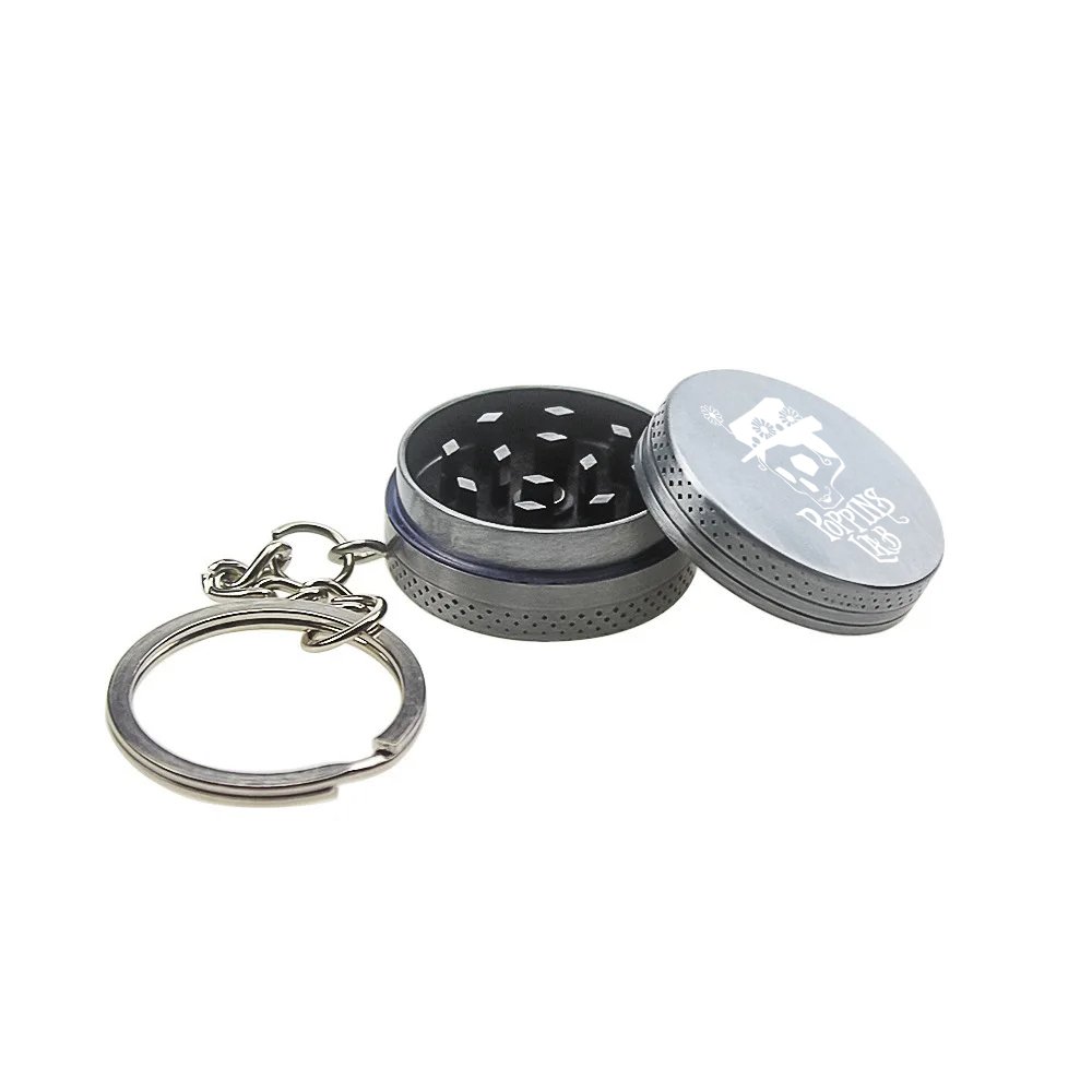 Grinder compacto con forma de llavero, fabricado en metal resistente. Con un diámetro de 30 mm, es ideal para llevar siempre contigo de forma discreta y funcional.