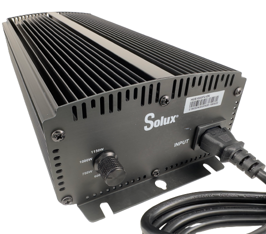 Dispone de un microprocesador controlado que mantiene el nivel de lúmenes de la lámpara durante más tiempo que los balastros tradicionales. Bajo nivel de encendido a solo 3 A por equipo y protección IP43. Es un equipo que funciona de forma silenciosa y es muy ligero, pudiéndose montar en la pared. Con protección térmica y de circuitos. Tecnología inteligente digital “soft-start”. En combinación con las lámparas Solux de 600 y 1000 W se obtienen los mejores resultados .