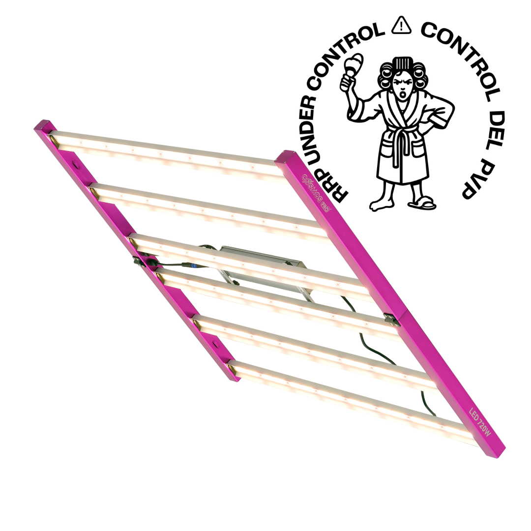 El Cosmos Pro 720W Elite es una luminaria LED de espectro completo diseñada para cultivadores exigentes que buscan máxima eficiencia, penetración lumínica y control absoluto en cada etapa del cultivo. Con una arquitectura de 6 barras plegables y un diseño robusto, esta luminaria garantiza un reparto uniforme de la luz, ideal tanto para la fase vegetativa como de floración.