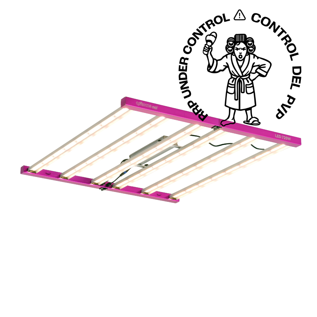 El Cosmos Pro 720W Elite es una solución LED, eficiente y altamente profesional que se posiciona como una opción premium en iluminación hortícola. Perfecta para cultivadores que buscan maximizar producción y calidad, manteniendo un consumo energético optimizado.