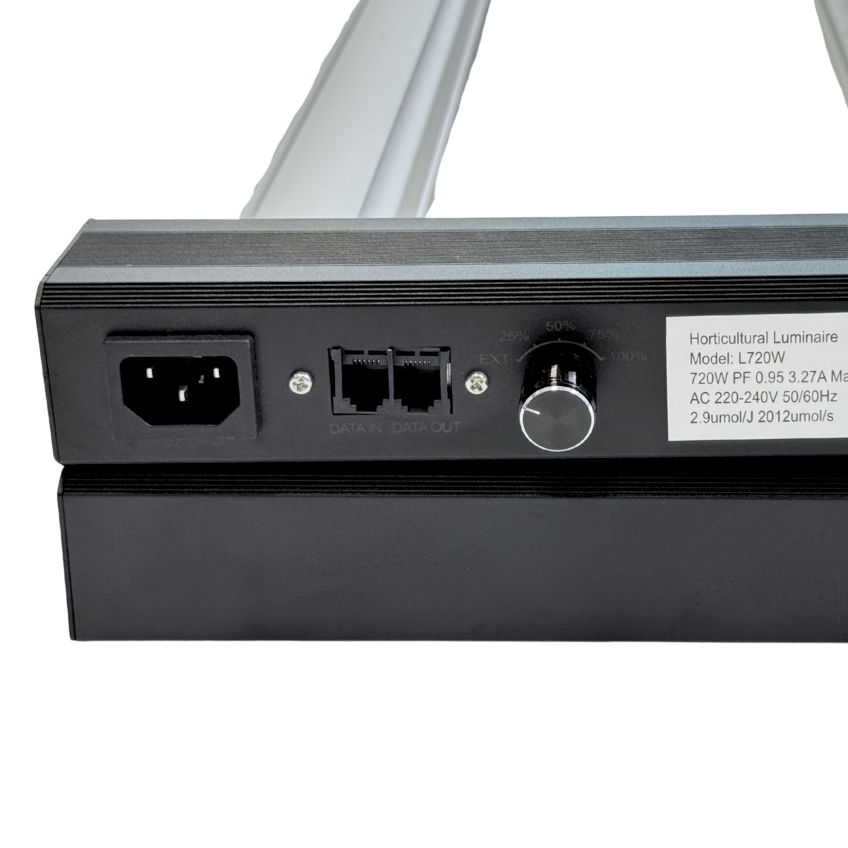 - Alta potencia y eficiencia: 720W con una eficiencia de 2.9 µmol/J, garantizando un consumo energético óptimo y sostenible.