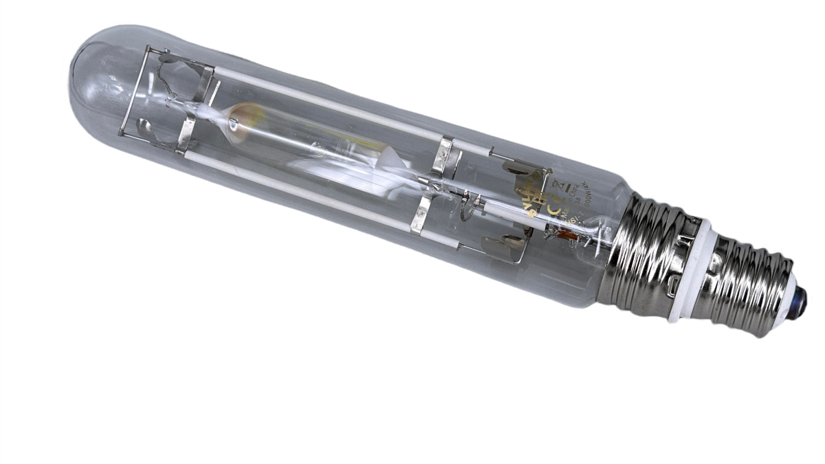 Lámpara de halogenuro metálico que incorpora un tubo de descarga de cuarzo situado en el interior de una carcasa exterior de vidrio duro.