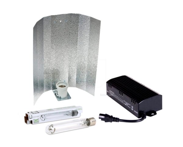 Kit de iluminación completo que consta de un balastro, una bombilla y un reflector. Estos kits son ideales para el cultivo en interior, ofreciendo todo lo necesario para sacar el máximo rendimiento a tus cosechas.