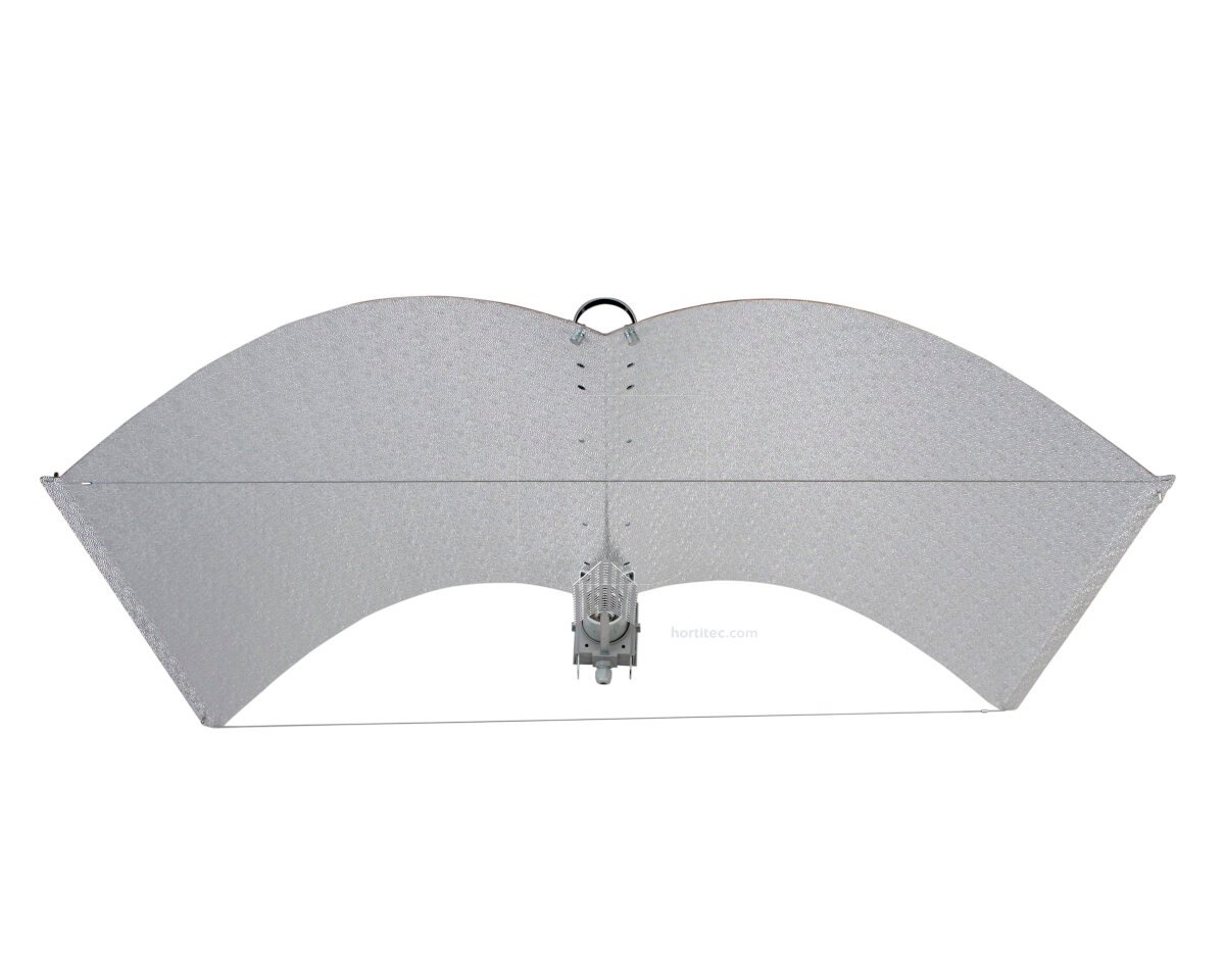 Reflector especialmente diseñado para doblar la eficiencia de los reflectores tradicionales. Incrementa el área de cultivo por lámpara en un 75 %. Incrementa la cosecha por lámpara en un 50 %. Reduce el calor y ahorra energía.