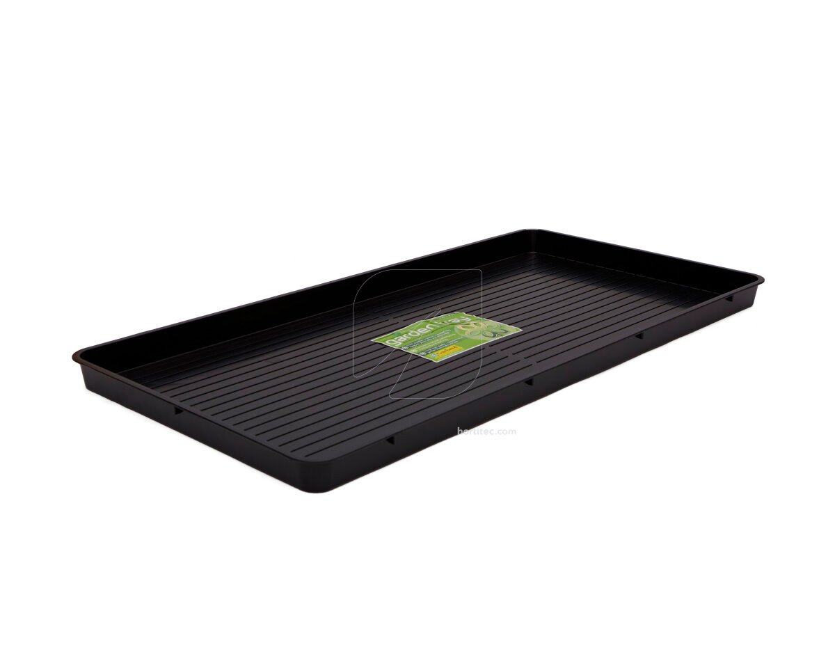 La capacidad interna de la bandeja grande baja es de 25 litros. El drenaje es mejor ya que una serie de crestas horizontales superficiales en la base interna de la bandeja lo facilitan. La bandeja se inserta perfectamente en la mayoría de mesas de invernaderos.
