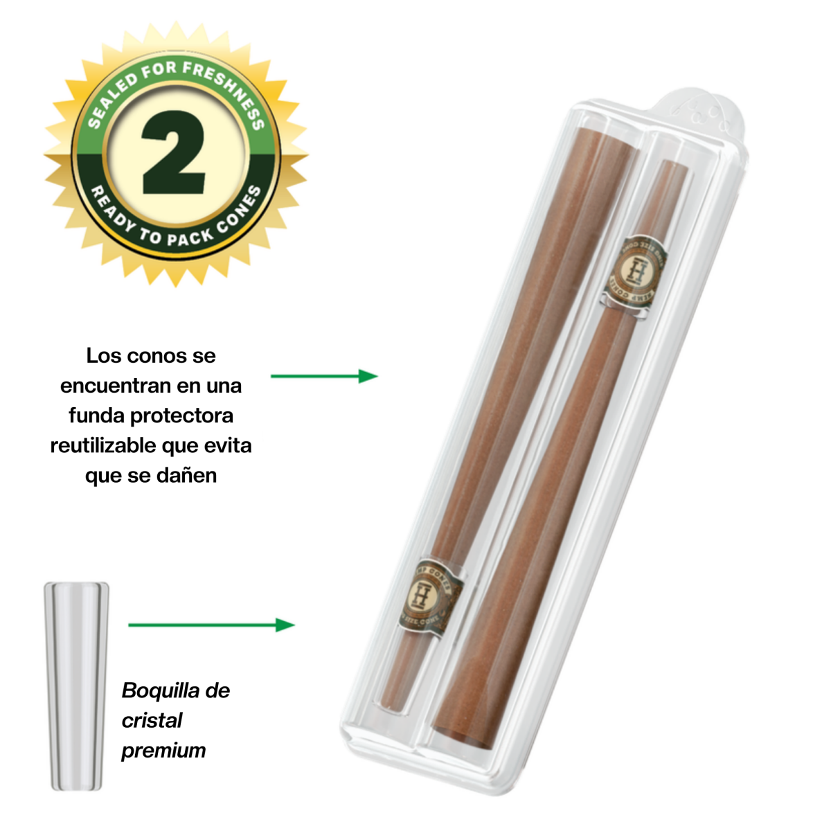 Fabricados con materiales naturales y sin aditivos, estos conos garantizan una combustión uniforme y un sabor puro. Su punta de cristal puede limpiarse fácilmente y reutilizarse, lo que los convierte en una opción más duradera y sostenible.