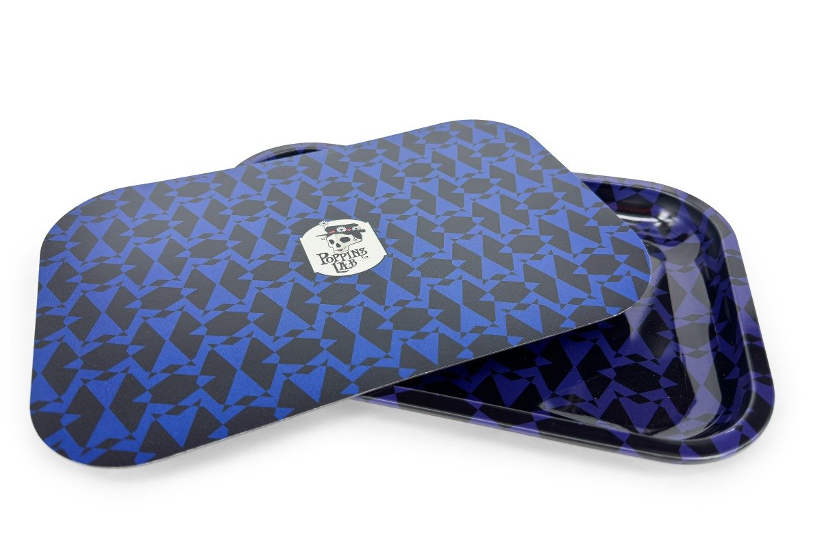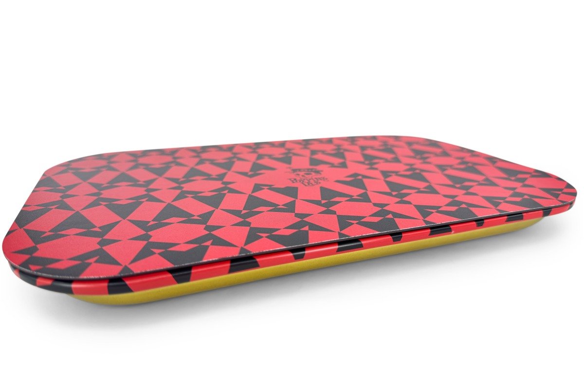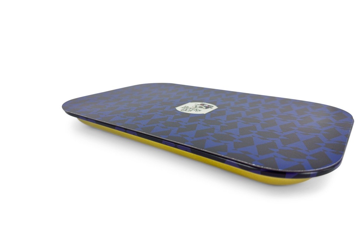 Bandeja de metal de medidas de 288 x 188 mm que cuenta con cubierta magnética para almacenamiento de tabaco u otros utensilios.