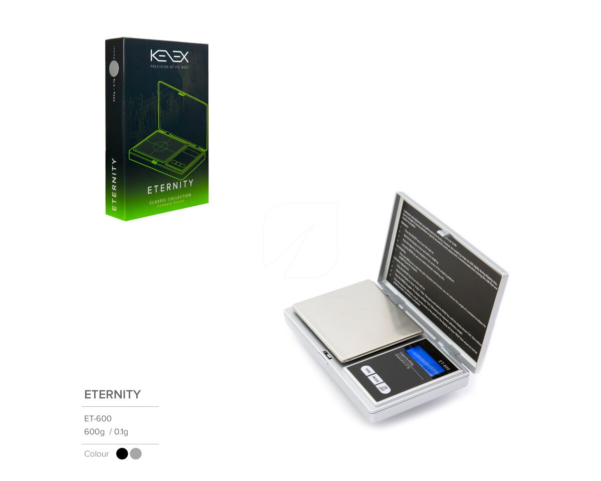 La báscula Eternity de Kenex, es uno de sus diseños más compactos que cuenta con la precisión y calidad que esta marca siempre ofrece. Eternity tiene una tapa incorporada, con cierre que se abre a través de un botón, para que la báscula se mantenga protegida siempre que no la estemos usando. Cuenta con protección de sobrecarga para que no se descalibre si ponemos sobre ella un peso superior al que puede leer. Disponible en dos versiones, Eternity te ofrece precisión de pesado a través de una placa de acero inoxidable, vista de los resultados en una pantalla LCD y en diversas unidades de medida.