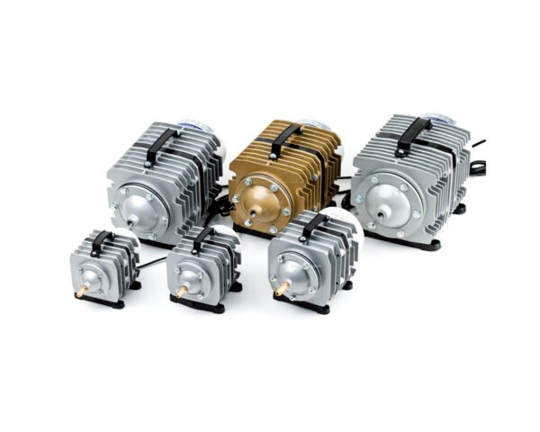 Bombas de aire con un avanzado sistema de compresión, que amortigua y silencia a múltiples niveles y es extremadamente silencioso. Contiene un caucho especial artificial para mantener la producción y presión de aire constantes a lo largo del tiempo.