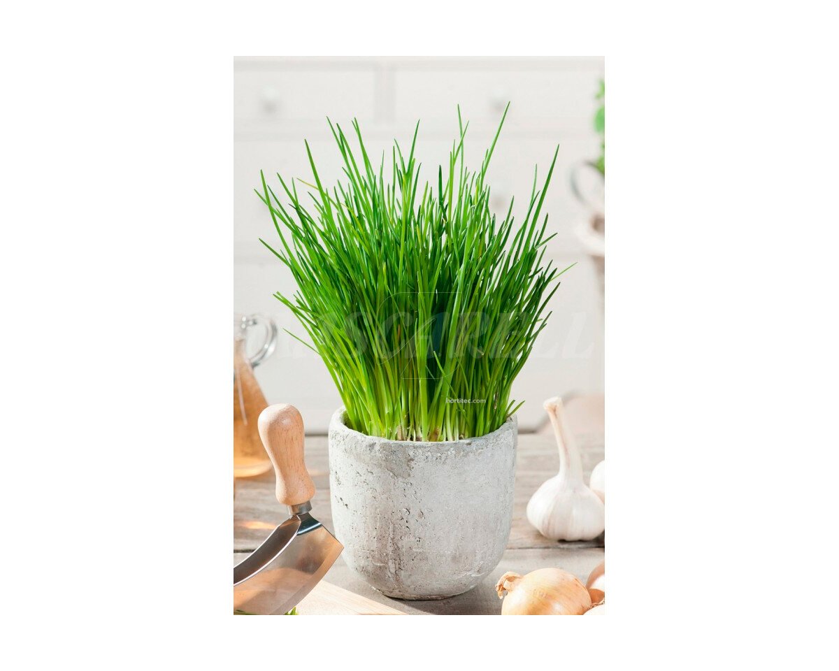 Planta vivaz muy resistente al frío, sus hojas son finas, alargadas y tubulares. Están huecas por dentro y miden unos 20cm de altura, además tiene propiedades estimulantes, diuréticas y antisépticas, y un elevado contenido en vitamina C. Cuando las hojas son cortadas sirven para dar sabor a las salsas, ensaladas, pastas…etc.