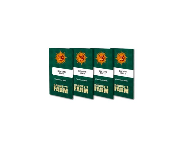 Variedad que surge del cruce de un ejemplar 80 índica, como es la Biscotti, con el fenotipo Mintz, obteniendo una versión campeona dentro del catálogo de Barney’s Farm. Con la Biscotti Mintz se obtiene una planta fácil de cultivar, de tamaño medio, con una altura que en interior ronda los 90 cm, mientras que en exterior puede alcanzar los 2 metros. Su periodo de floración es de 8 a 9 semanas en interior, siendo octubre el mes para cosecha en exterior. Esta variedad ofrece rendimientos notables, con una producción de 600 a 650 g/m2 en interior y que se puede elevar a 1,5 kg por planta en exterior.