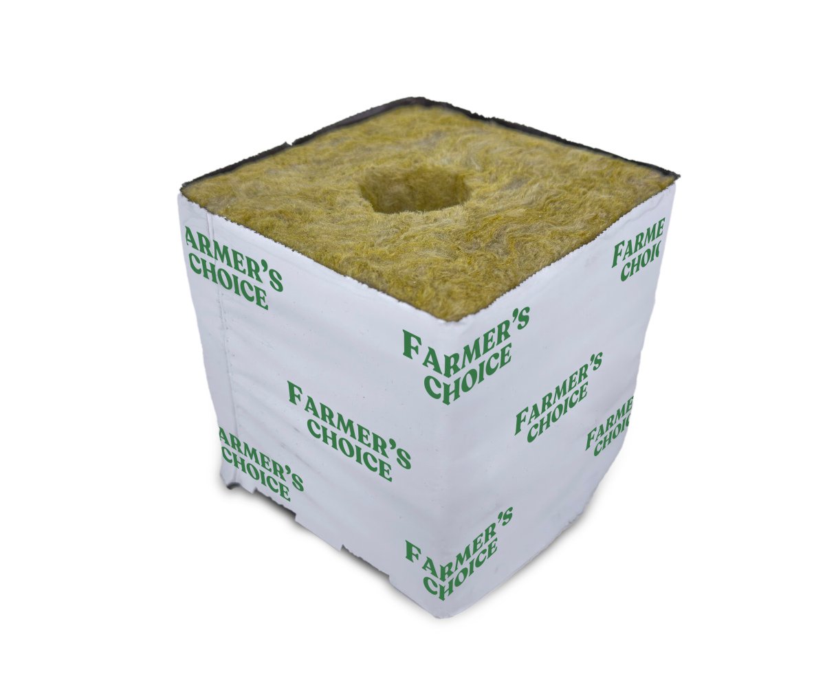 Los tacos de lana de roca de Farmer’s Choice son versátiles y se utilizan tanto para germinación como para el trasplante de plantas a raíz desnuda.