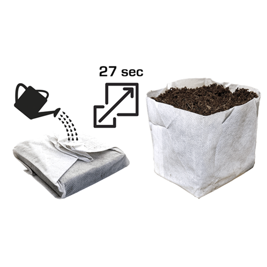 Cada bloque se expande en cuestión de minutos tras el riego, en lugar de horas, lo que ahorra tiempo y dinero. Además, ofrece un drenaje ideal para la plantación inmediata y favorece el rápido crecimiento de las raíces.