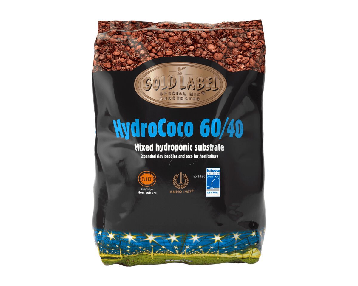 Hydro coco 60/40 es un sustrato de coco mixto para hidroponía que contiene el 60% de bolas de arcilla y el 40% de fibra de coco.